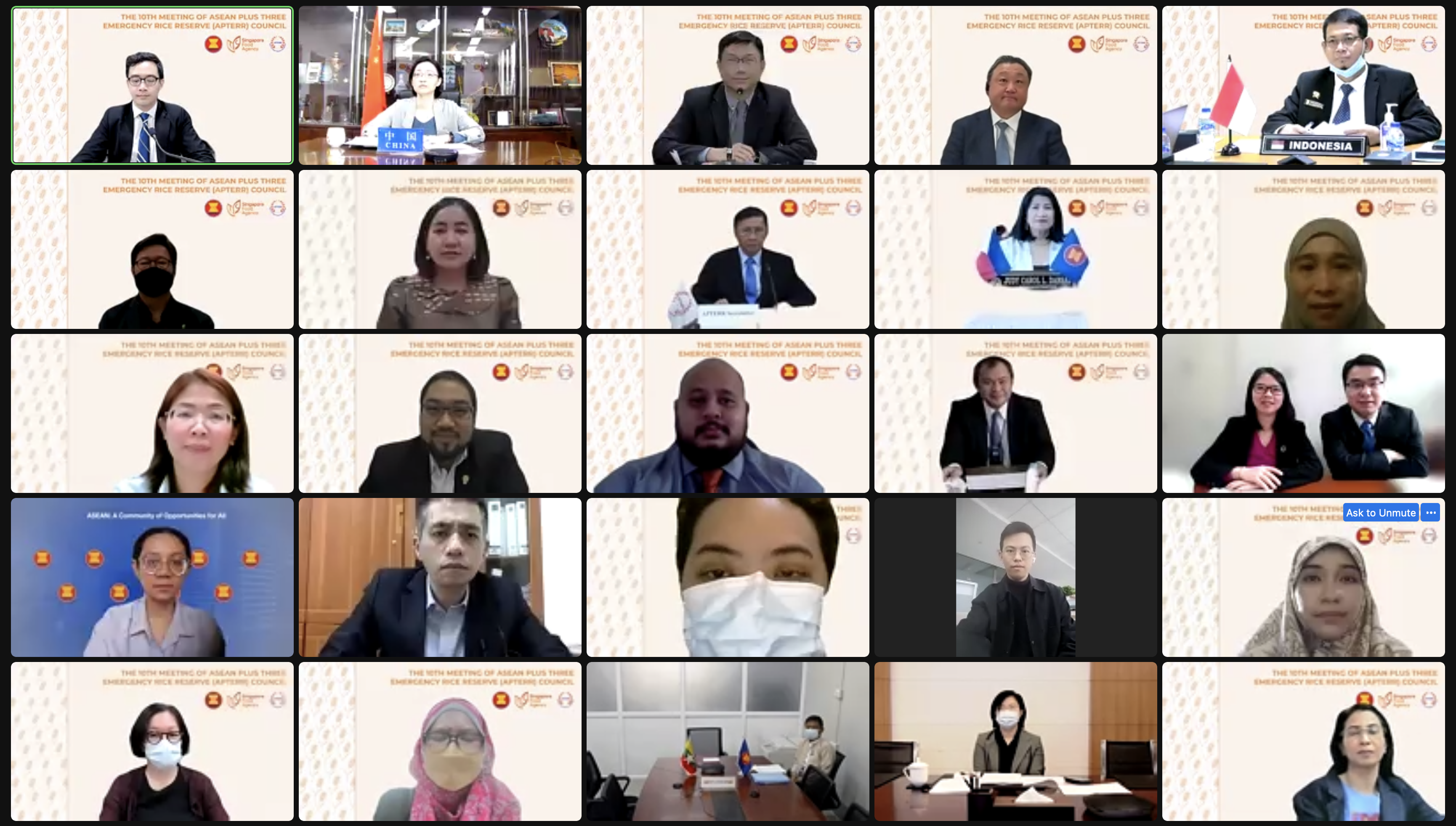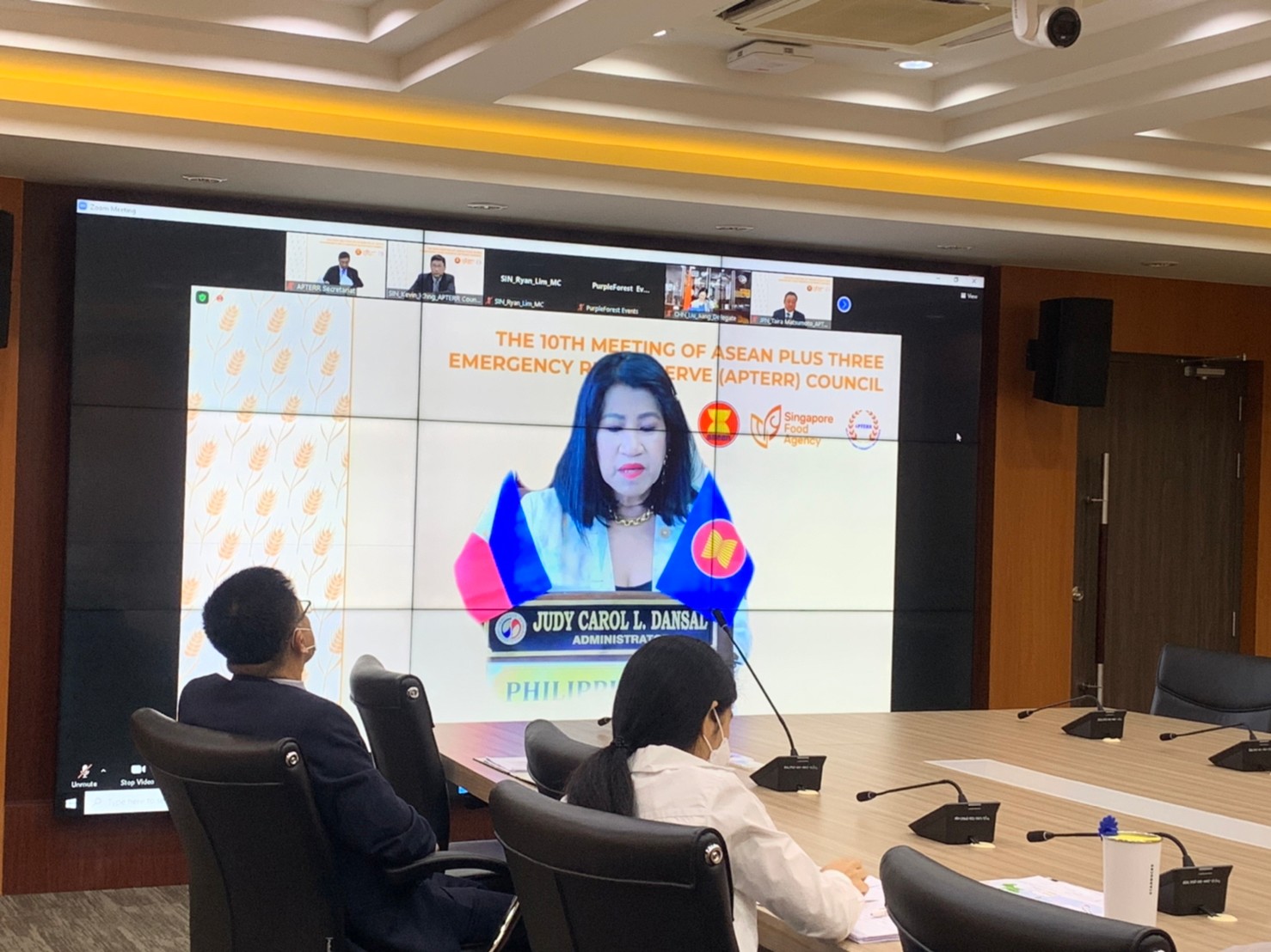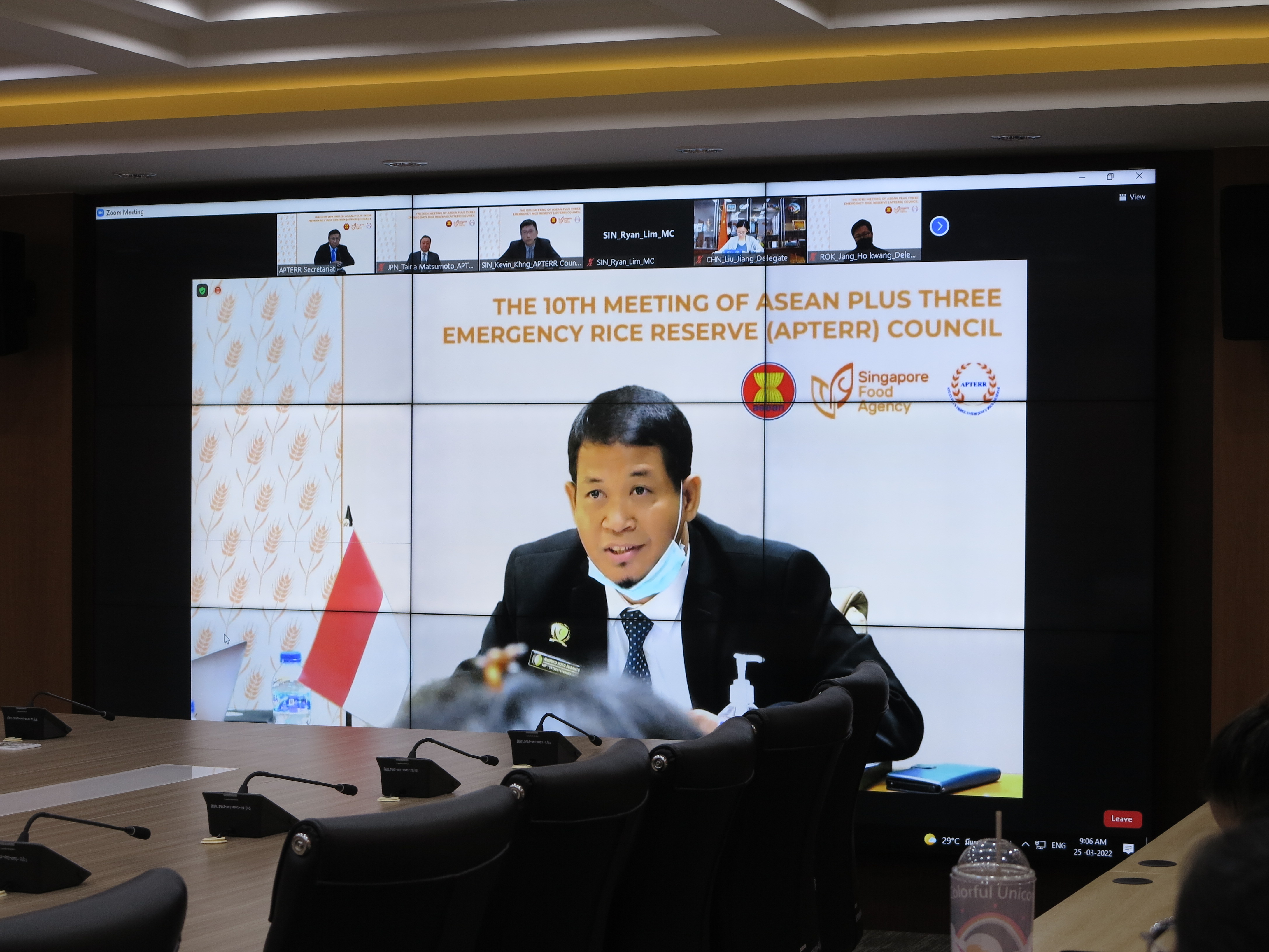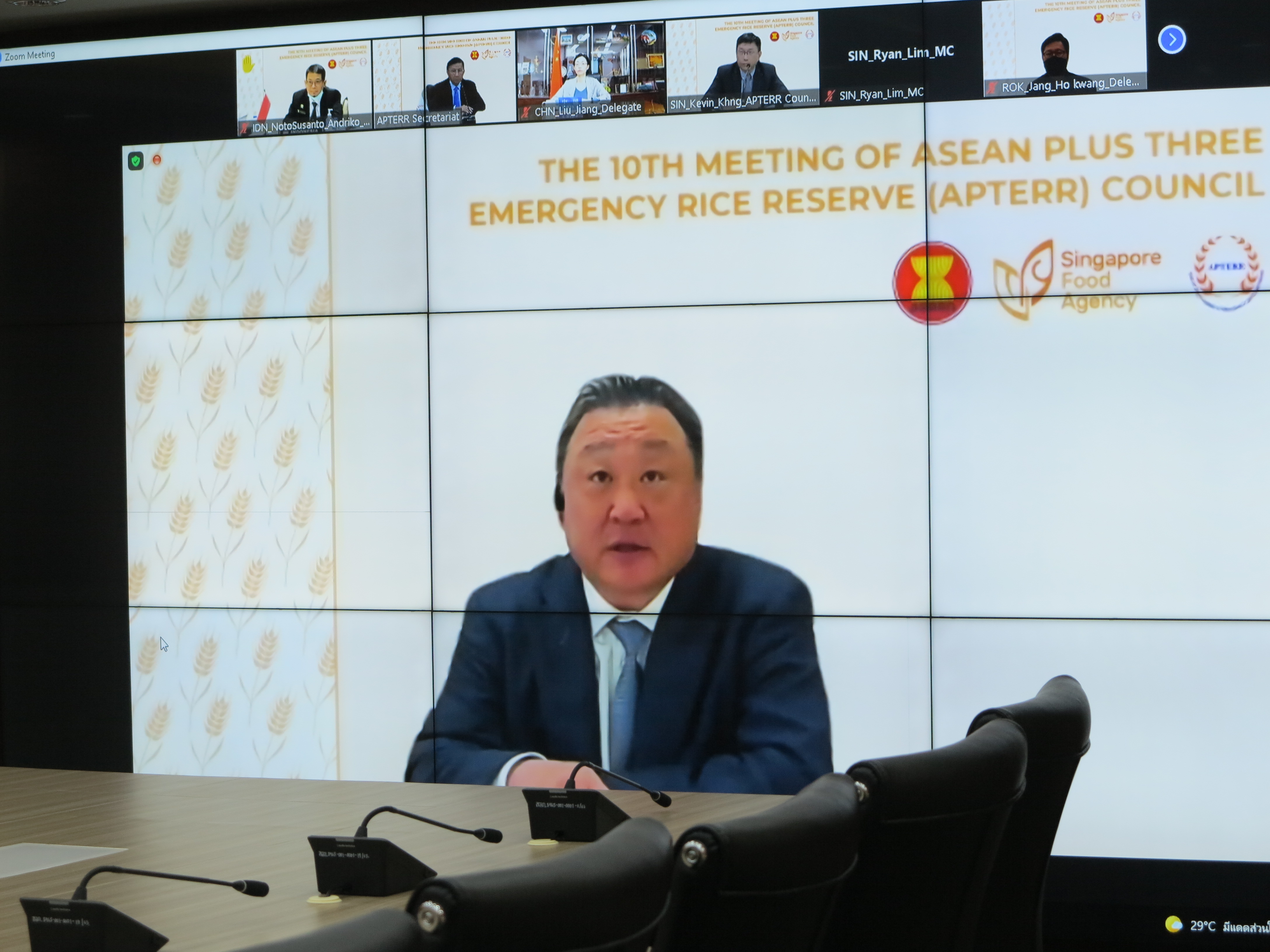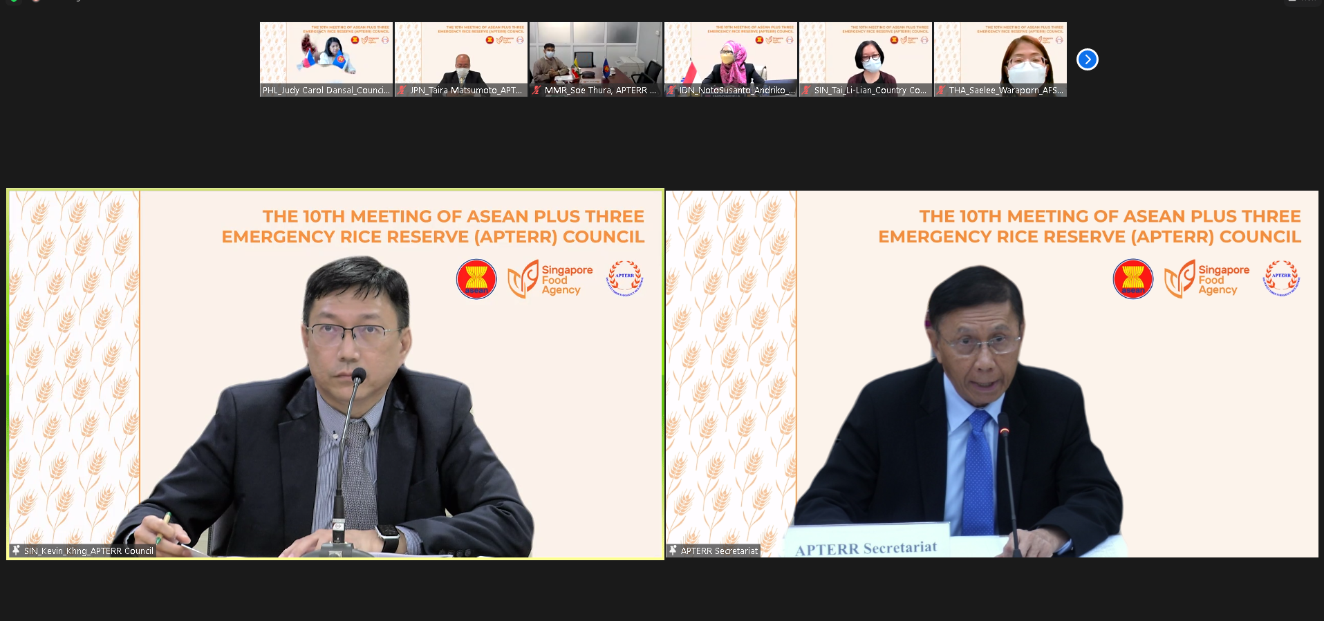 The virtual 10th Meeting of ASEAN Plus Three Emergency Rice Reserve (APTERR) Council ended with a great success on 25 March 2022 organised by the APTERR Secretariat, and hosted by the Singapore Food Agency (SFA), Singapore. The meeting was co-chaired by Mr. Kevin KHNG, Senior Director of International Relations Divisions, SFA and Mr. Taira Matsumoto, Director General of Crop Production Policy Department, Crop Production Bureau, Ministry of Agriculture, Forestry and Fisheries (MAFF) of Japan.