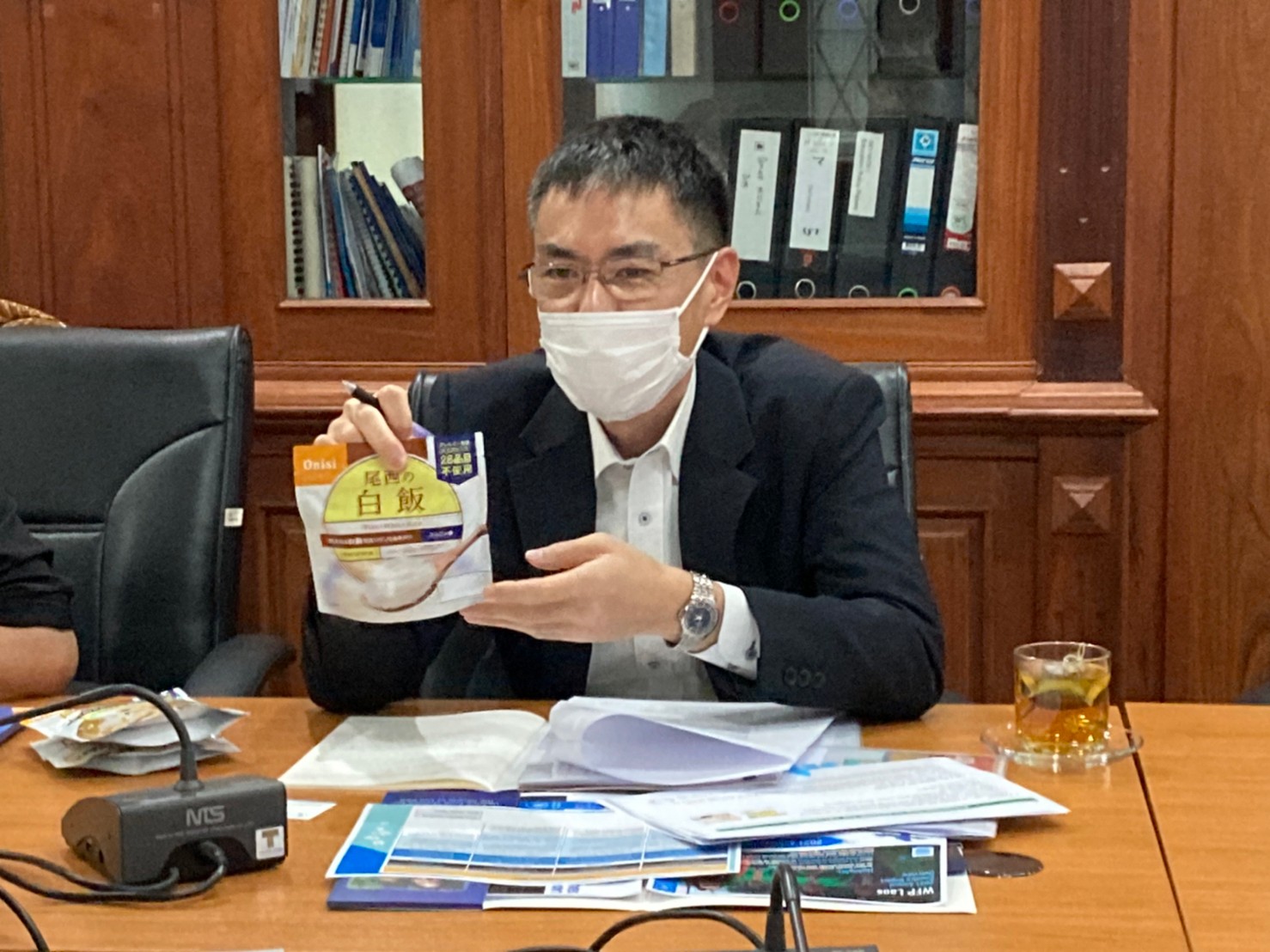 The meeting shared the update on the situation of food security in Lao PDR as well as the APTERR activities which have been implementing on in the country. On this occasion, Mr. Tojo presented the meeting with the ‘Precooked rice’ and ‘School Distribution Programme’ under Japan’s Initiatives to support the Tier 3 programme in providing emergency responses and ending poverty in the region. Meanwhile, the WFP shared its experiences on similar programmes and exchanged views on enhancing further cooperation in supporting the Lao PDR.