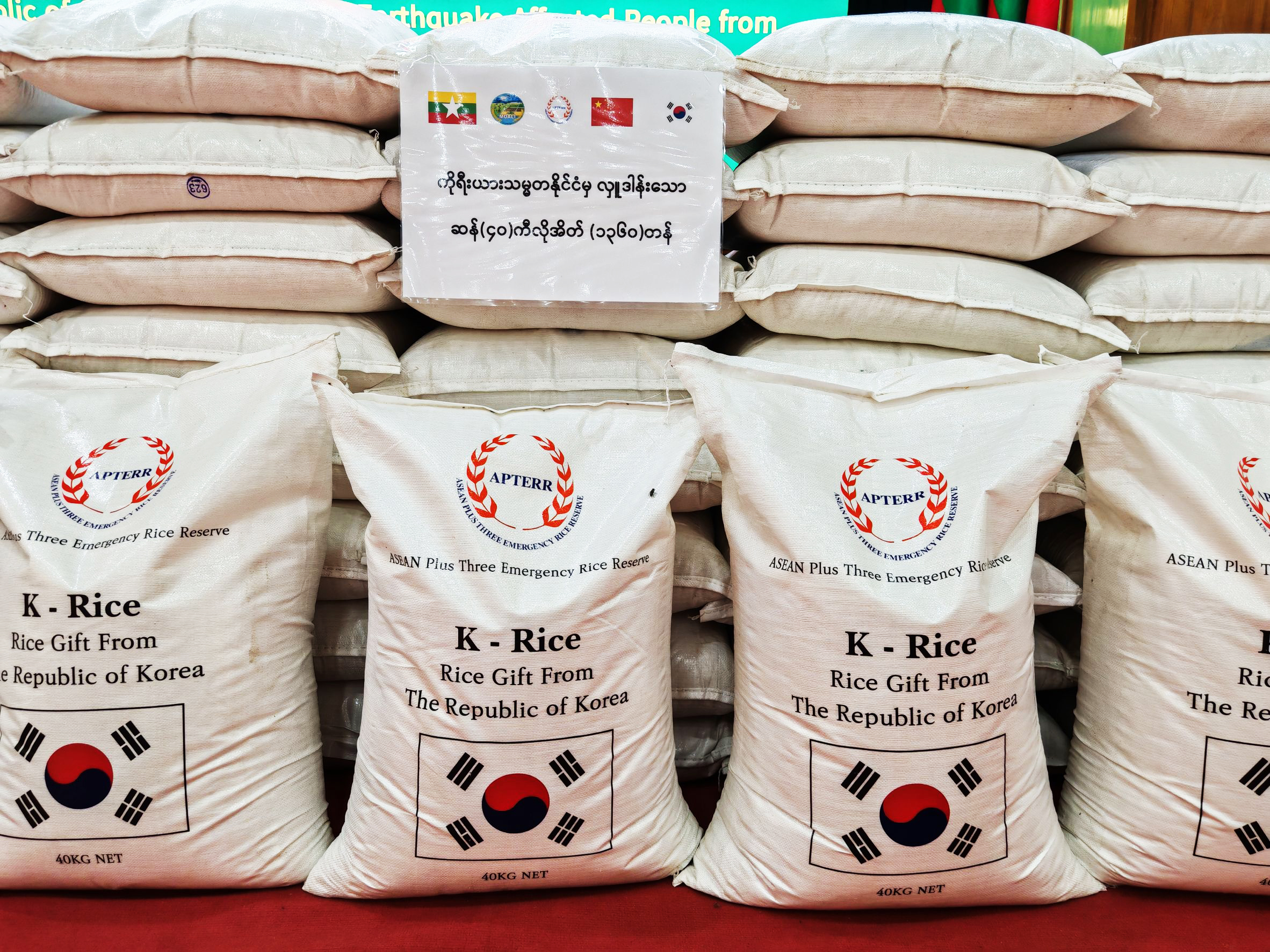 Following the 7.7-magnitude earthquake devastating Myanmar on 28 March 2025, the Republic of Korea’s 3,000-MT rice contribution, which had already been pre-positioned in DOA’s warehouse in Yangon, was promptly released to ensure a timely emergency food relief. The rice assistance has helped address the urgent needs of over 400,000 people across Nay Pyi Taw (1,360 MT), Mandalay (1,325), Sagaing (140 MT) and Shan (175 MT) respectively.