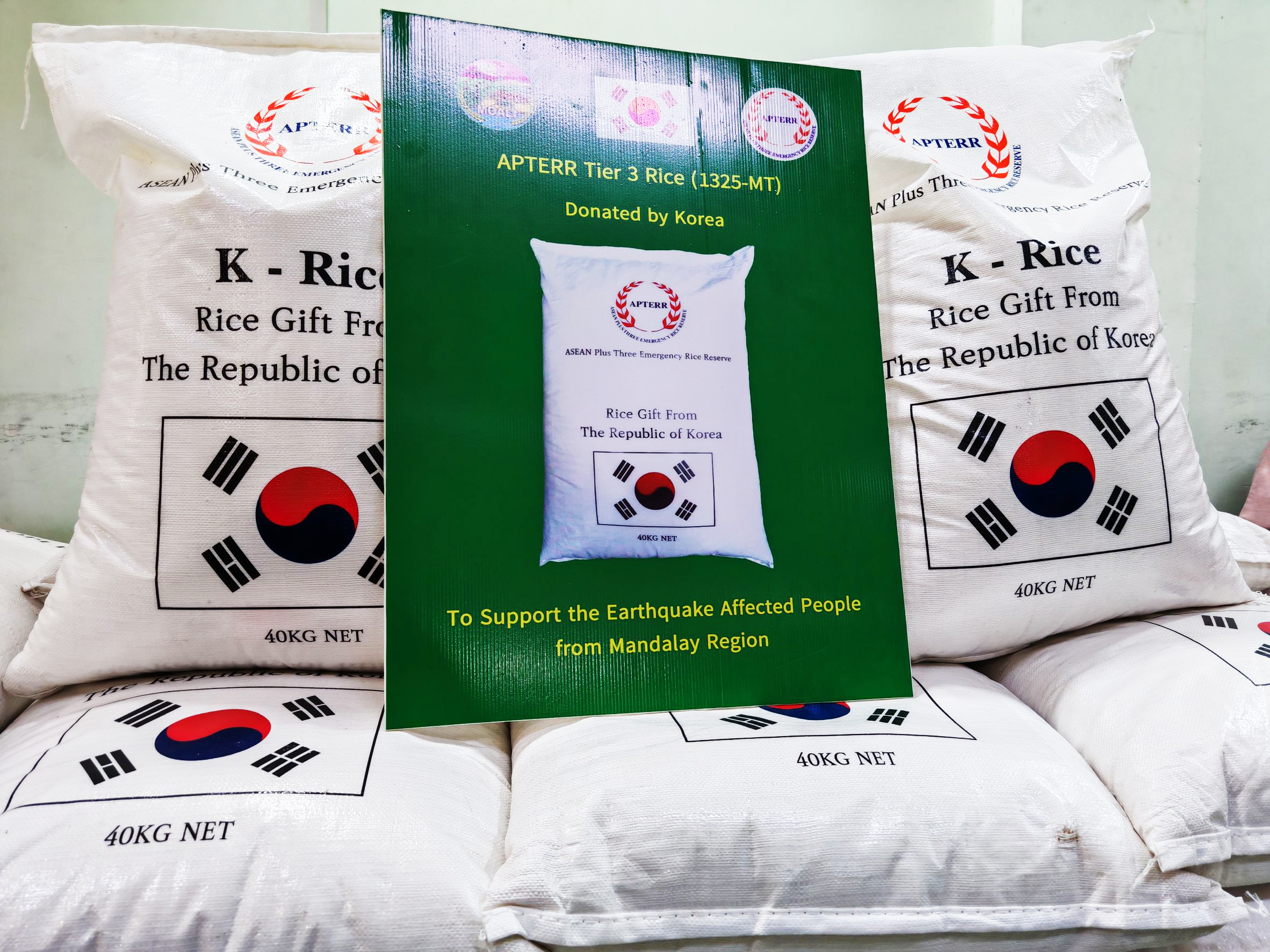 Minister-Counsellor Ms. Kim Weolsoon of the Embassy of the Republic of Korea in Myanmar, representing the donor country, also conveyed her deepest condolences to the people of Myanmar. The Republic of Korea has provided a total of USD 4 million in assistance to Myanmar following the massive earthquake, including USD 2 million in-kind support for the emergency response and another USD 2 Million for broaden humanitarian relief efforts through the international organisations, of which this APTERR rice assistance is a part. She reaffirmed Korea’s commitment to support the people of Myanmar in mitigating their pains and aiding in their recovery efforts.