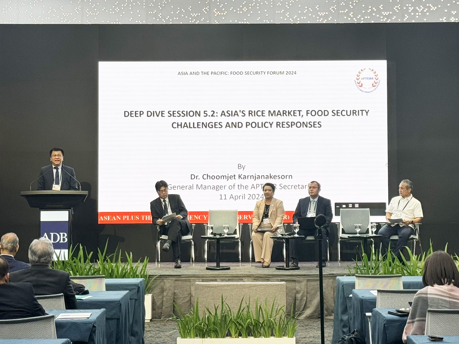 Dr. Choomjet Karnjanakesorn, General Manager of the APTERR Secretariat, was invited to be one of panelists of the Deep Dive Session on Asia’s Rice Market, Food Security Concerns and Policy at the ‘Asia and Pacific Food Security Forum 2024’ organised by the Asian Development Bank (ADB) on 12 April 2024 at ADB Headquarters in Manila, the Philippines.