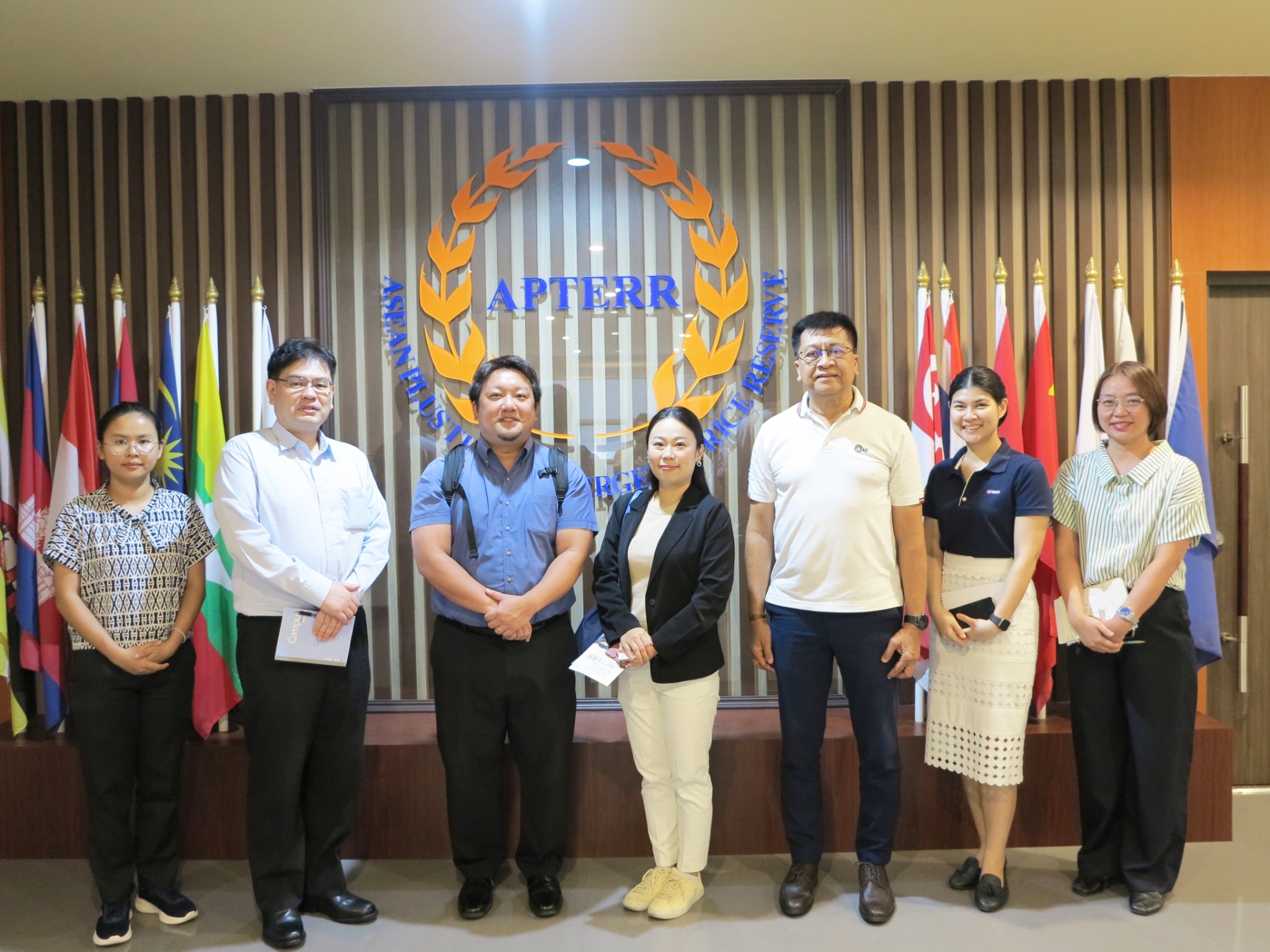 The APTERR Secretariat led by Dr. Choomjet Karnjanakesorn, General Manager (GM) warmly welcomed representatives from the Ministry of Agriculture, Forestry and Fisheries (MAFF) of Japan including Dr. Hideki Hagiwara, Deputy Assistant Minister, Minister’s Secretariat, Mr. Hideyuki Morii, Director and Senior Negotiator, Bilateral Affairs Division, Export and International Affairs Bureau, Ms. Shoko Kasai, Bilateral Affairs Division, Export and International Affairs Bureau together with Mr. Tadayuki Kanenaga from the Embassy of Japan in Thailand at the APTERR Secretariat on 23 February 2024. The APTERR GM and the representatives from MAFF of Japan exchanged views and information on food security in ASEAN Plus Three (APT) region as well as sought further cooperation.