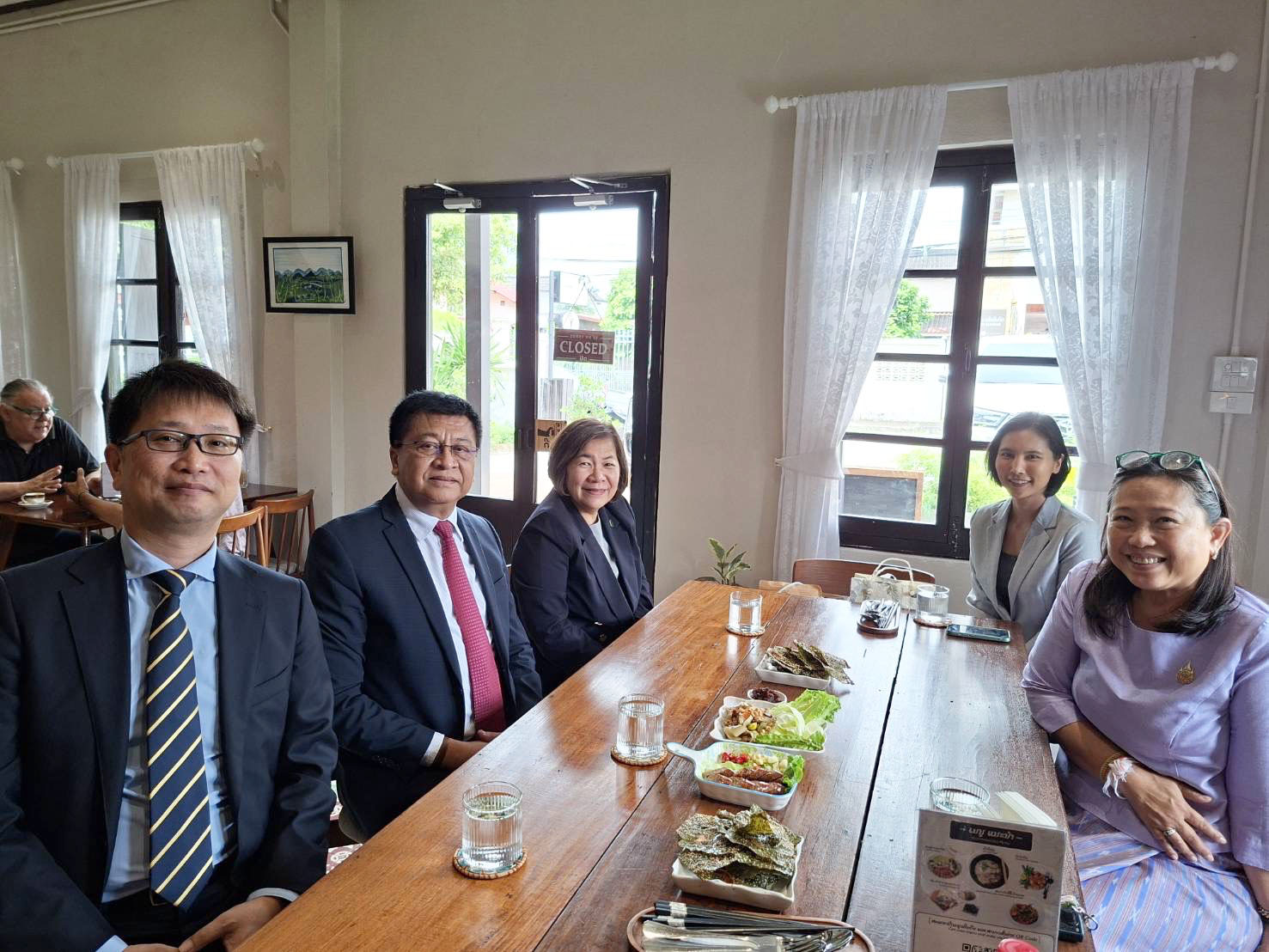 Dr. Choomjet Karnjanakesorn, General Manager of the APTERR Secretariat, together with Mr. Aro KASAKAWA, Japanese Expert, and the APTERR staff, was invited to a working lunch hosted by Ms. Morakot Sriswadi, Ambassador of Thailand to the Lao PDR, on 16 September 2025 in Vientiane. The lunch was also attended by Ms. Busadee Santipitaks, Chief Executive Officer of Mekong River Commission (MRC) Secretariat.
