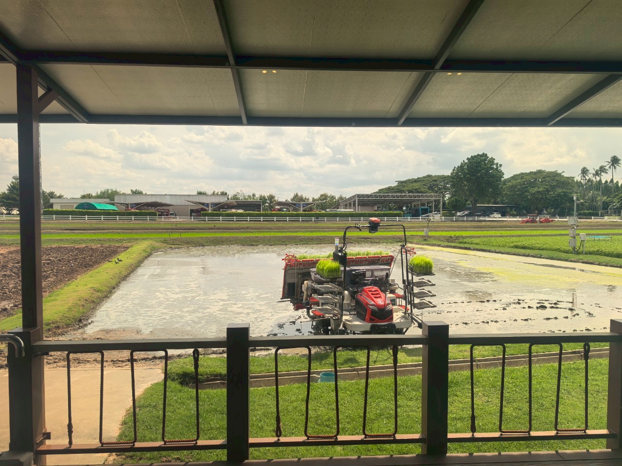 The APTERR Secretariat team visited several zones at the Kubota Farm, the first educational and experiential modern farm in Southeast Asia, where farmers and visitors can explore and experience modern agricultural innovations. The precision rice farm and crop rotation zone demonstrated precision farming, including zero broadcast solutions, an automatic direction system utilising GNSS technology and agricultural drones. In this zone, the APTERR Secretariat team participated in the activity to check whether the rice seedlings were ready to receive nutrients from fertilisers.
